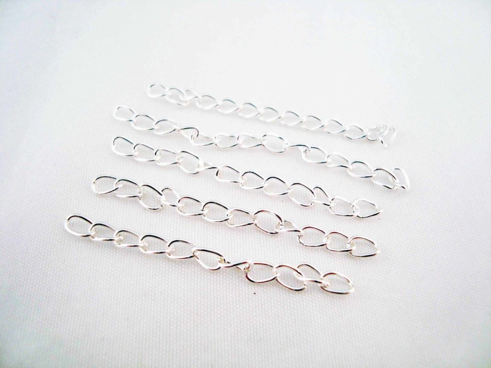 Lot de 100 chaînettes d'extension Argent Brillant, 50mm X 3mm, anneaux 3.5mm X 2mm.
