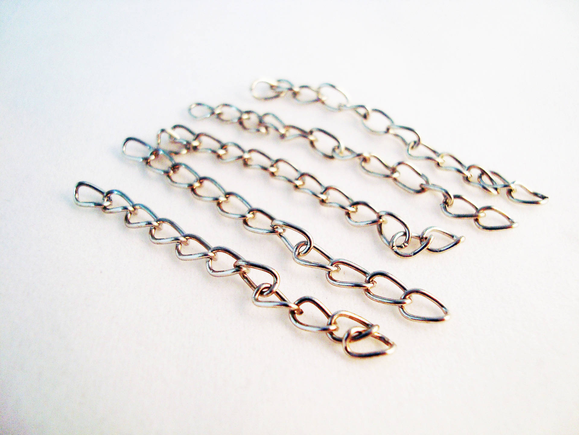 Lot de 100 chaînettes d'extension argent vieilli mat, 50mm X 3mm, anneaux 3.5mm X 2mm.