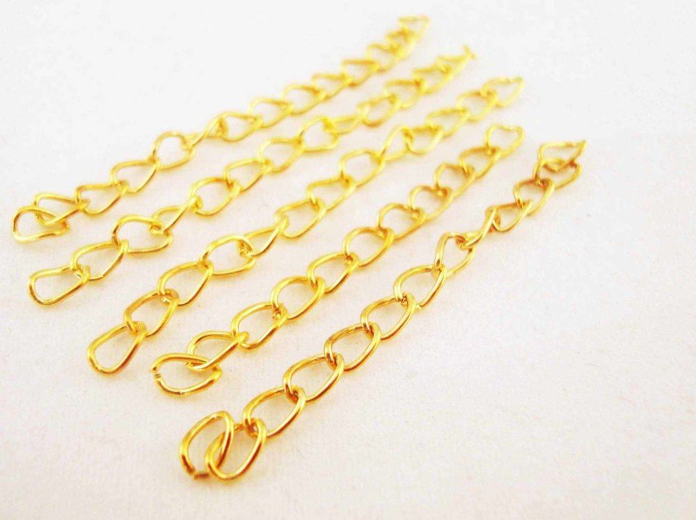 Lot de 100 chaînettes d'extension de couleur Doré, 50mm X 3mm, Taille de trou 3,8mm.