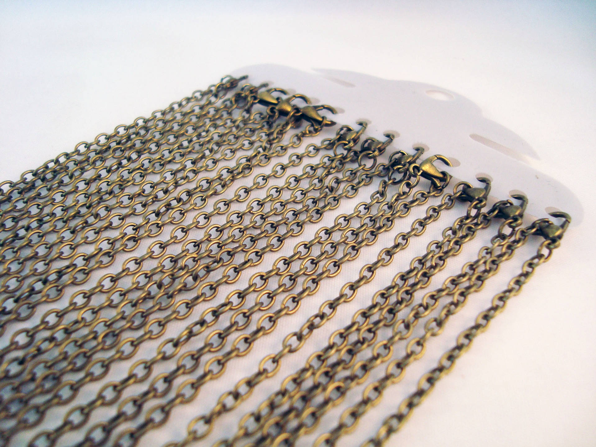 Lot de 12 Colliers à chaîne Maille Forçat bronze avec fermoir à mousqueton, Longueur 51cm