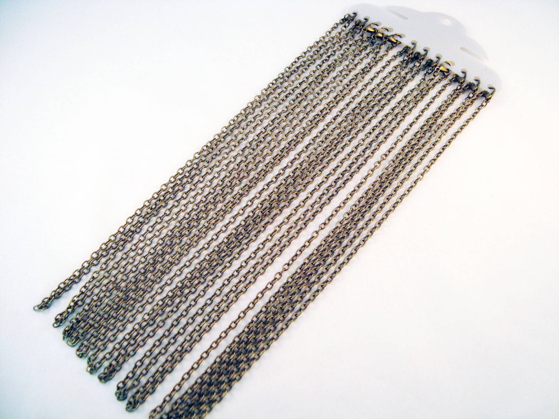 Lot de 12 Colliers à chaîne Maille Forçat bronze avec fermoir à mousqueton, Longueur 51cm.