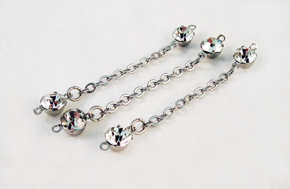 Lot de 3 chaînettes Connecteurs Argentées avec Strass de 5.5cm.
