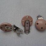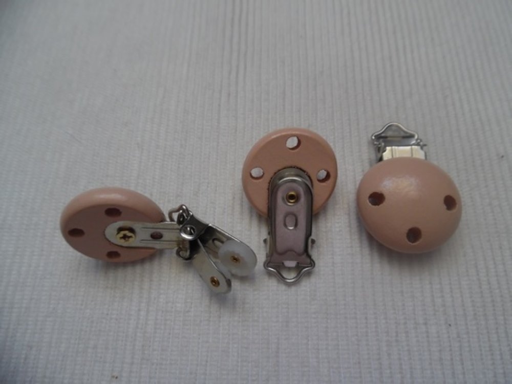 1 attache clip pince tétine bébé 2.9cm rond crème beige bois pince bretelle