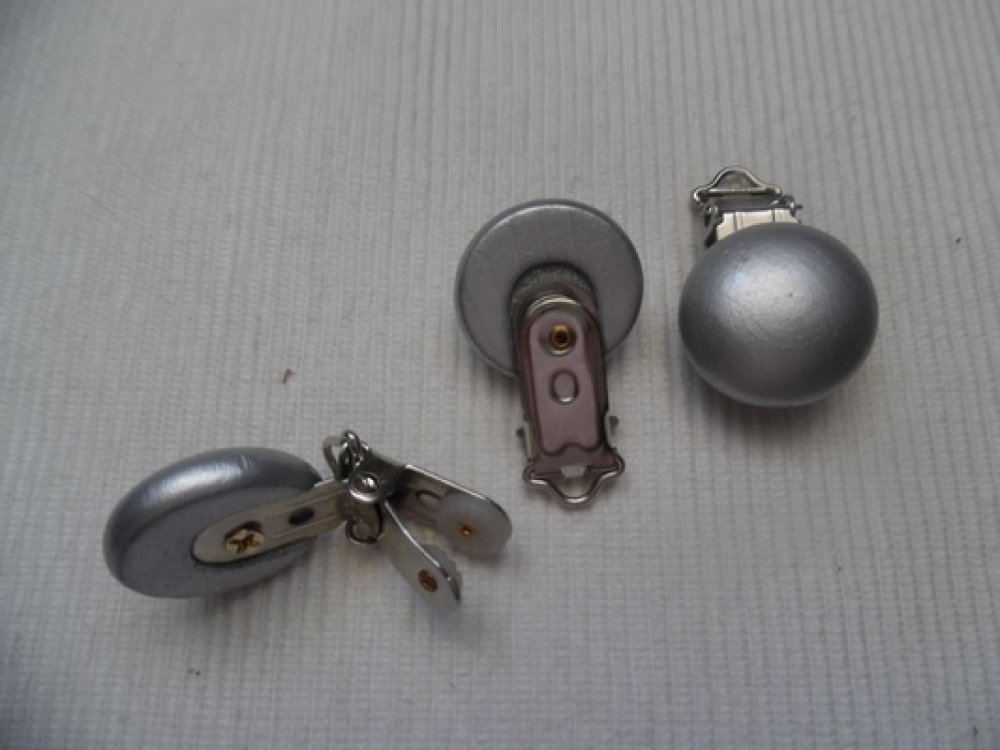 1 attache clip pince tétine bébé 2.9cm rond gris argenté bois pince bretelle