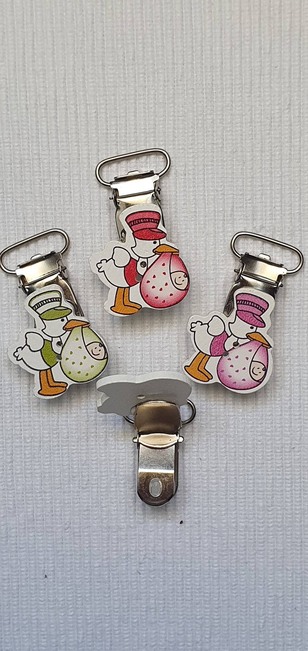 1 Attache clip pince tétine bébé rose 46.6x28mm cigogne canard bébé bois