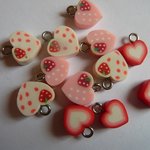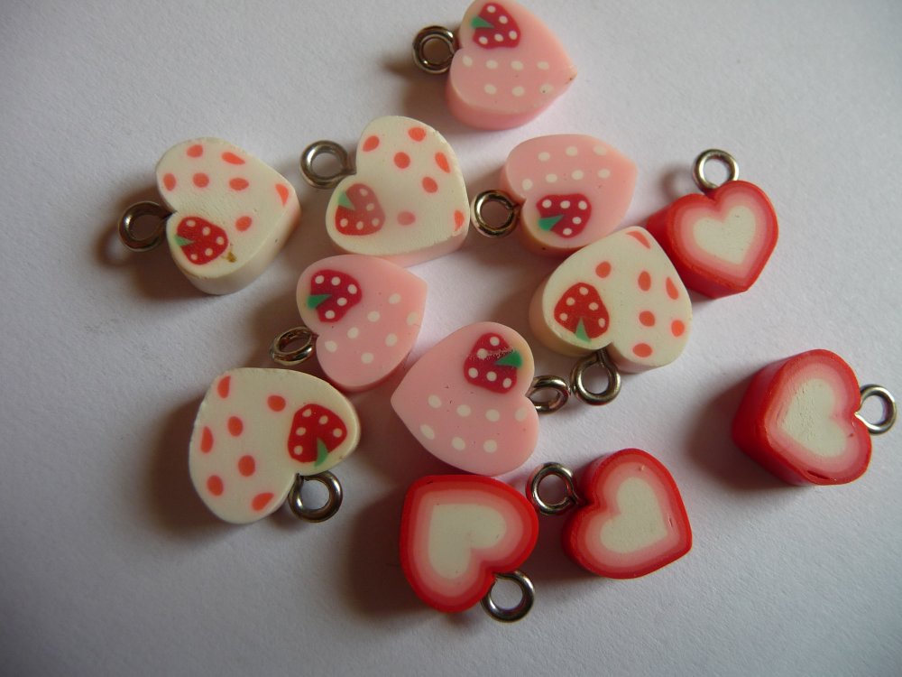 ASSORTIMENT DE 12 PETITS COEURS BRELOQUES ROSES ET ROUGES
