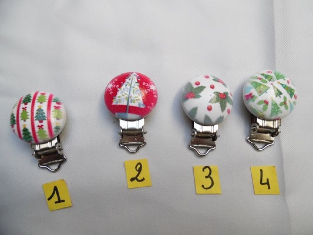 N°2 attache clip pince tétine bébé 2.9cm Noël rond bois
