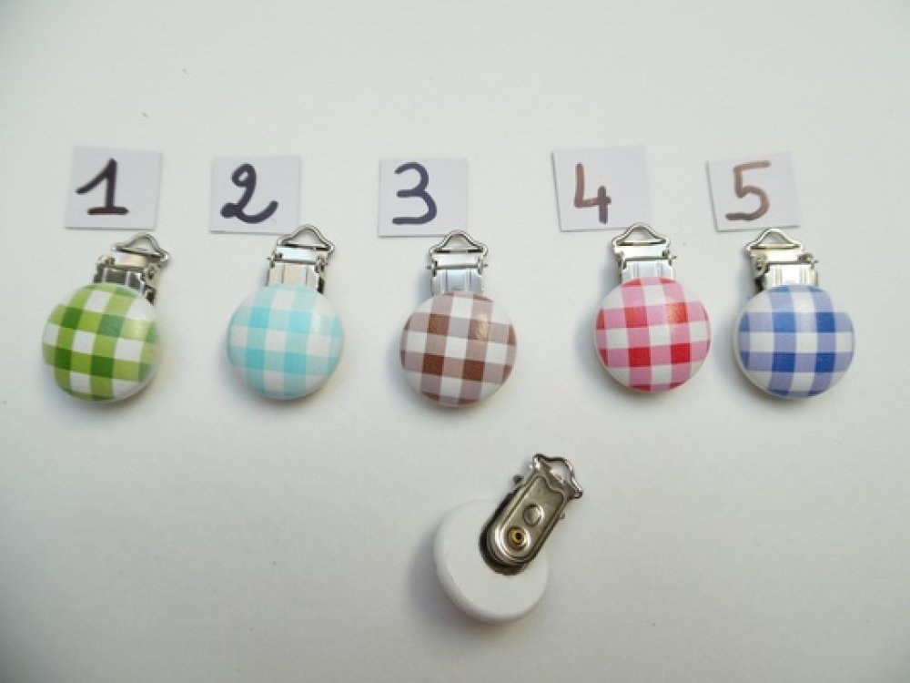 n°4 attache clip pince tétine bébé 2.9cm rond rouge blanc bois écossais pince bretelle