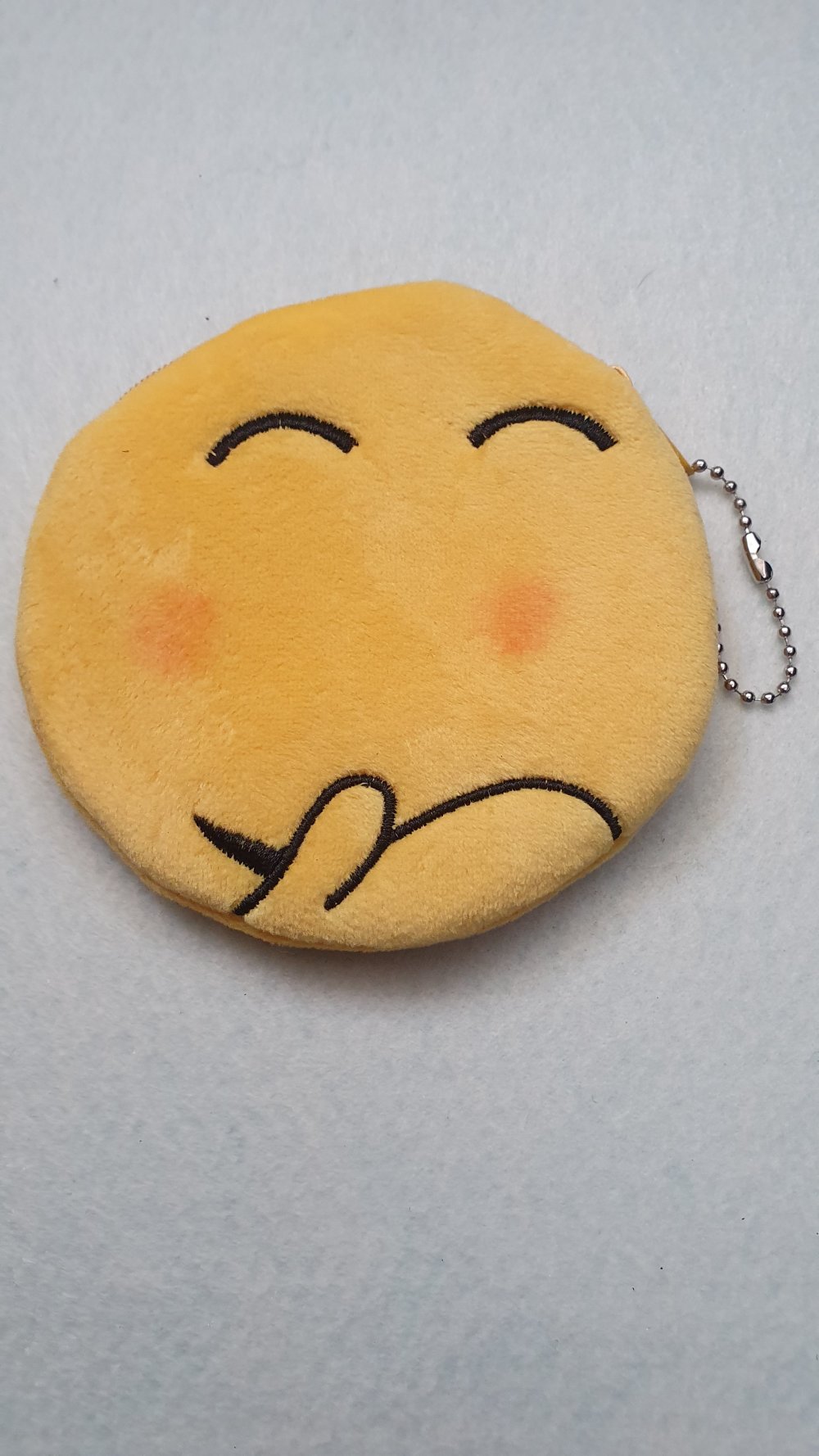 Porte monnaie smiley émoji sourire jaune velours 11x11cm