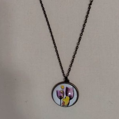Collier bronze cabochon en verre motifs fleurs