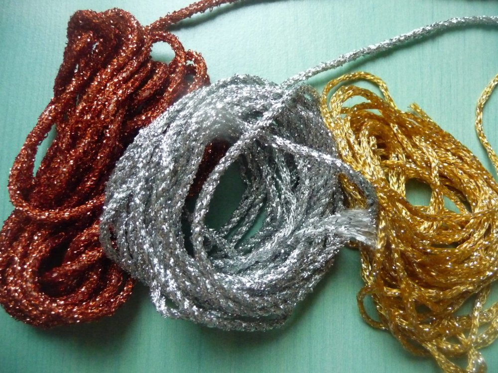 ENSEMBLE DE 3 CORDONS/CORDELETTES BRILLANTES COULEURS CUIVRE, ARGENTE, DORE