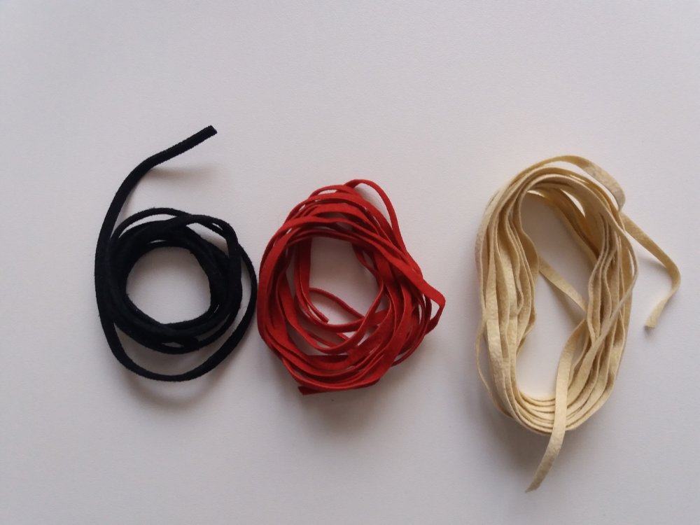3 cordons imitation daim, noir, rouge et blanc cassé