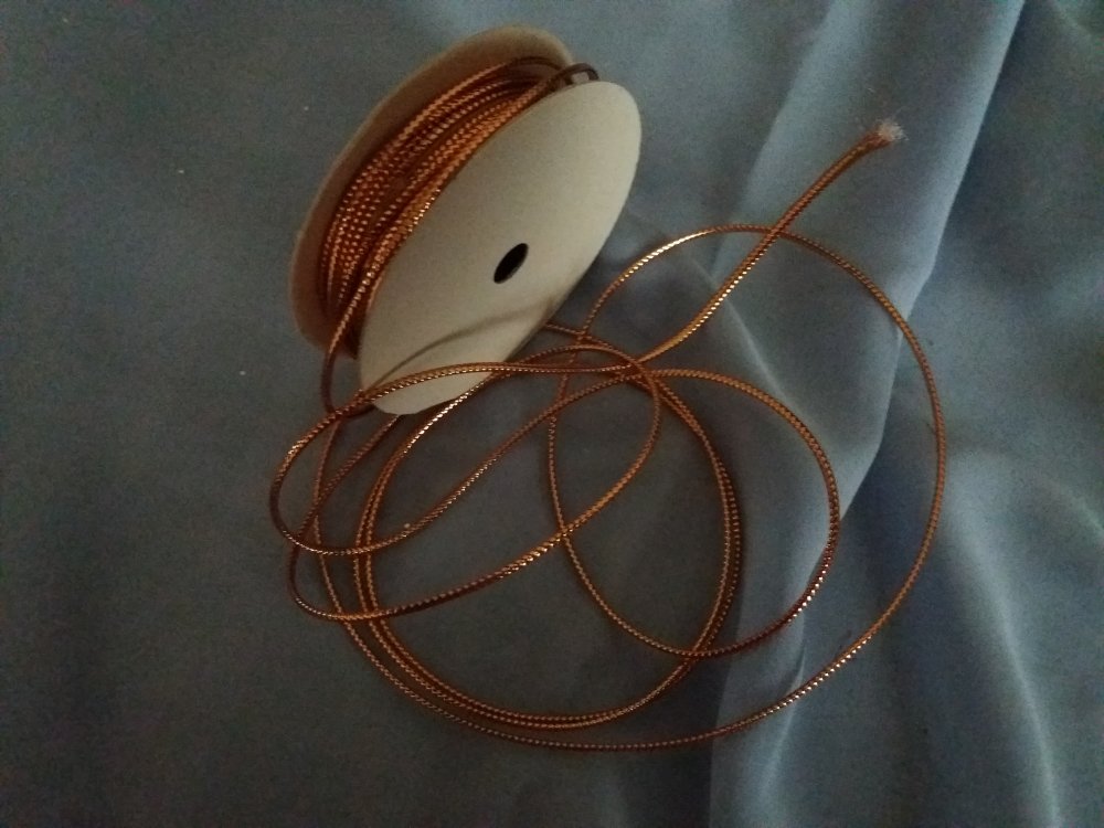 Voici une petite cordelette métallisée cuivrée, de 4,30 m de longueur sur 2 mm de largeur.
