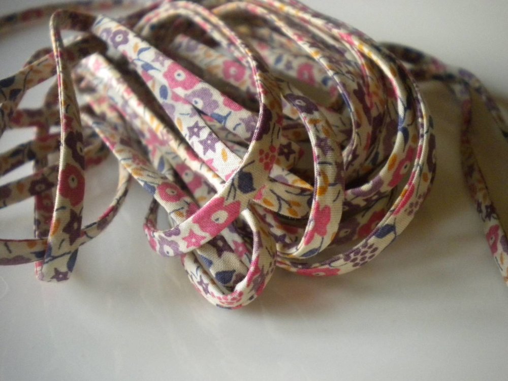 50 cm de cordon en liberty étoiles et fleurs en rose largeur 0,5 cm