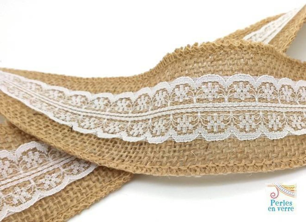 Un mètre de ruban large en chanvre et dentelle blanche, pour bijoux, sacs, déco....