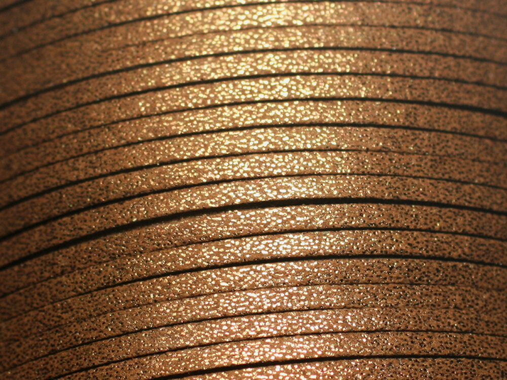 5 metres - Corde Cordon Laniere Suedine Daim 3mm Brun Marron Bronze Doré Pailleté Scintillant
