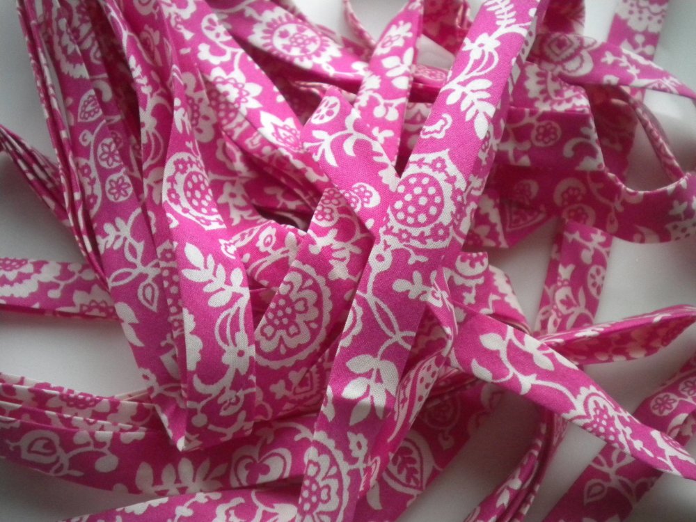 Biais liberty fuchsia et blanc largeur 1 cm plié 2 coupons 40cm et 25cm
