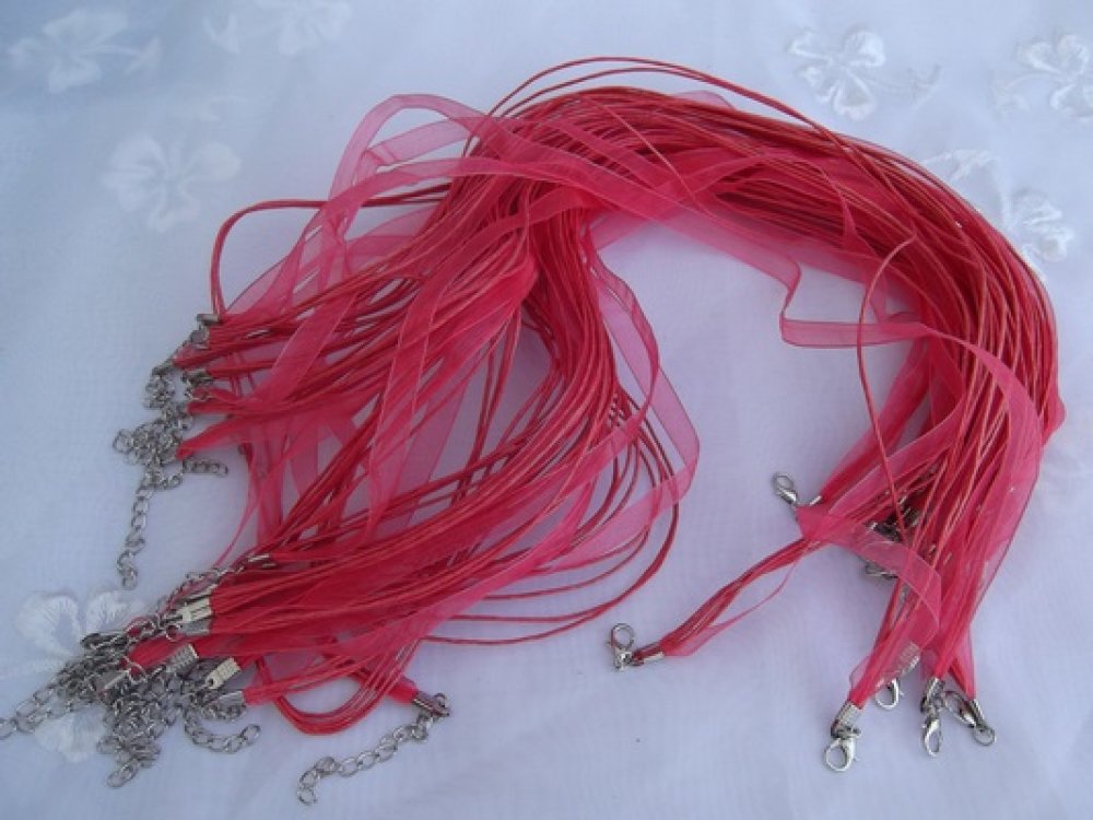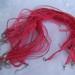 Collier corde vieux rose ruban organza vieux rose 43cm fermoir mousqueton de 12mm et petite chainette.