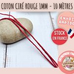 Cordon en coton ciré rouge 1mm - 10 mètres