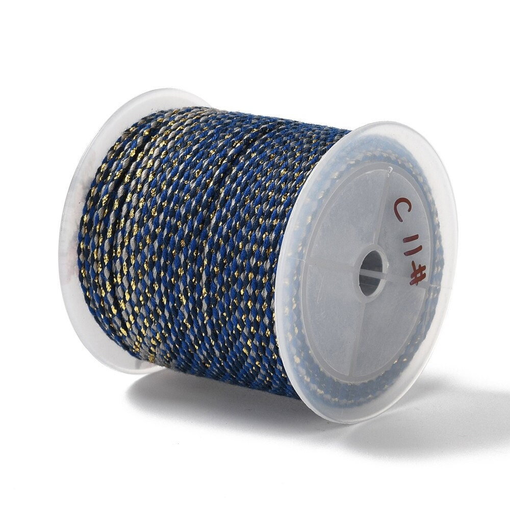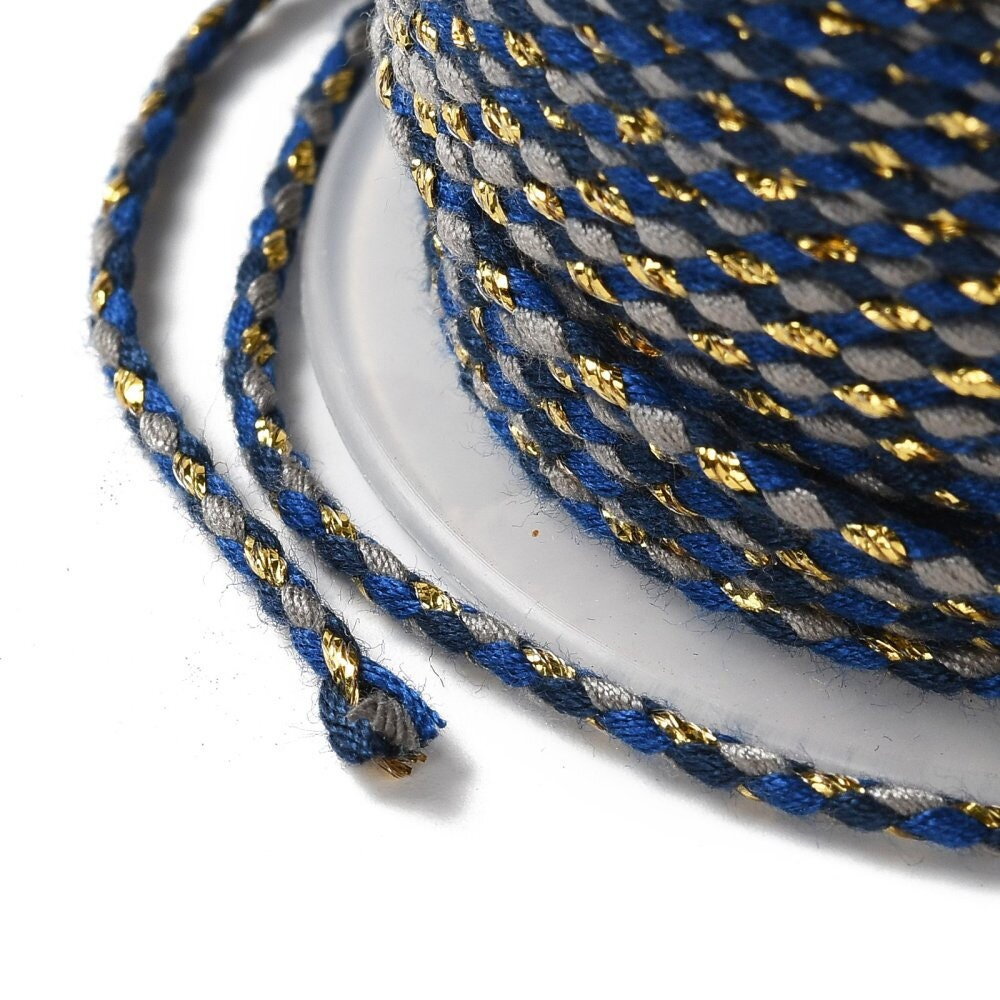 Cordon en coton tressé bleu gris fil doré 1,5 mm-2 mm cordon multicolore cordon pour bijoux en coton cordon scrapbooking longueur 1 mètre