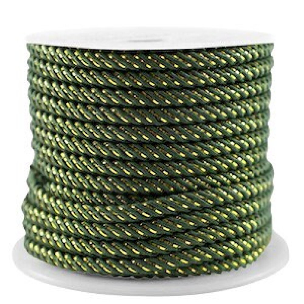 Cordon en polyester 3 mm cordon pour bijoux cordelette vert foncé et doré longueur 1 mètre