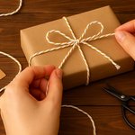 Astuce Creawish : pour un rendu chic et harmonieux, associez cette ficelle à du papier kraft naturel ou à des rubans satinés dorés — un duo parfait pour sublimer vos créations ou vos paquets cadeaux faits main !