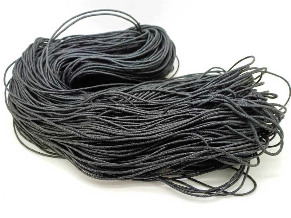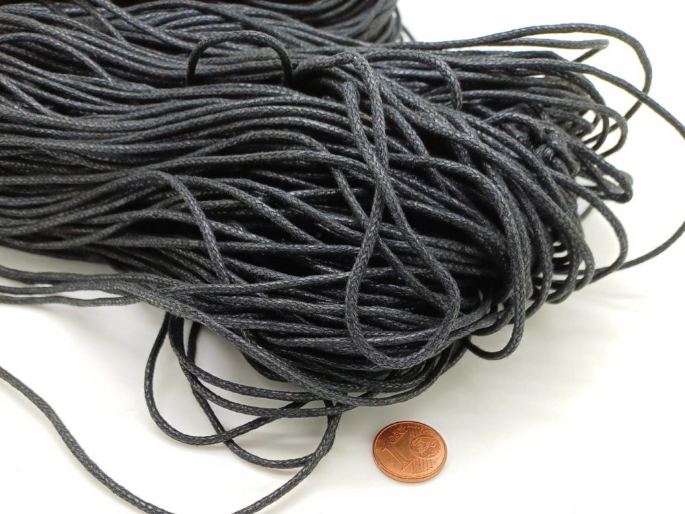 Fil coton ciré noir. Cordon basique tout usage: montage de bijoux, mercerie, loisirs créatifs.