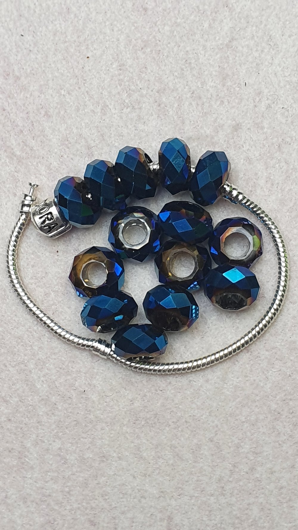 1 Perle charm cristal Bleu nuit AB 14x8mm à facette trou de 6mm