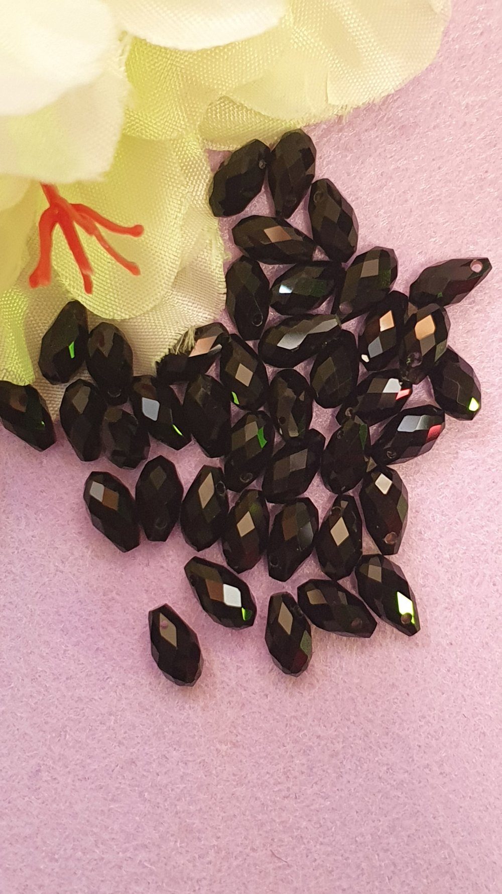 2 Perle goutte poire noire 10x5.5mm cristal à facette.trou de 0.6mm