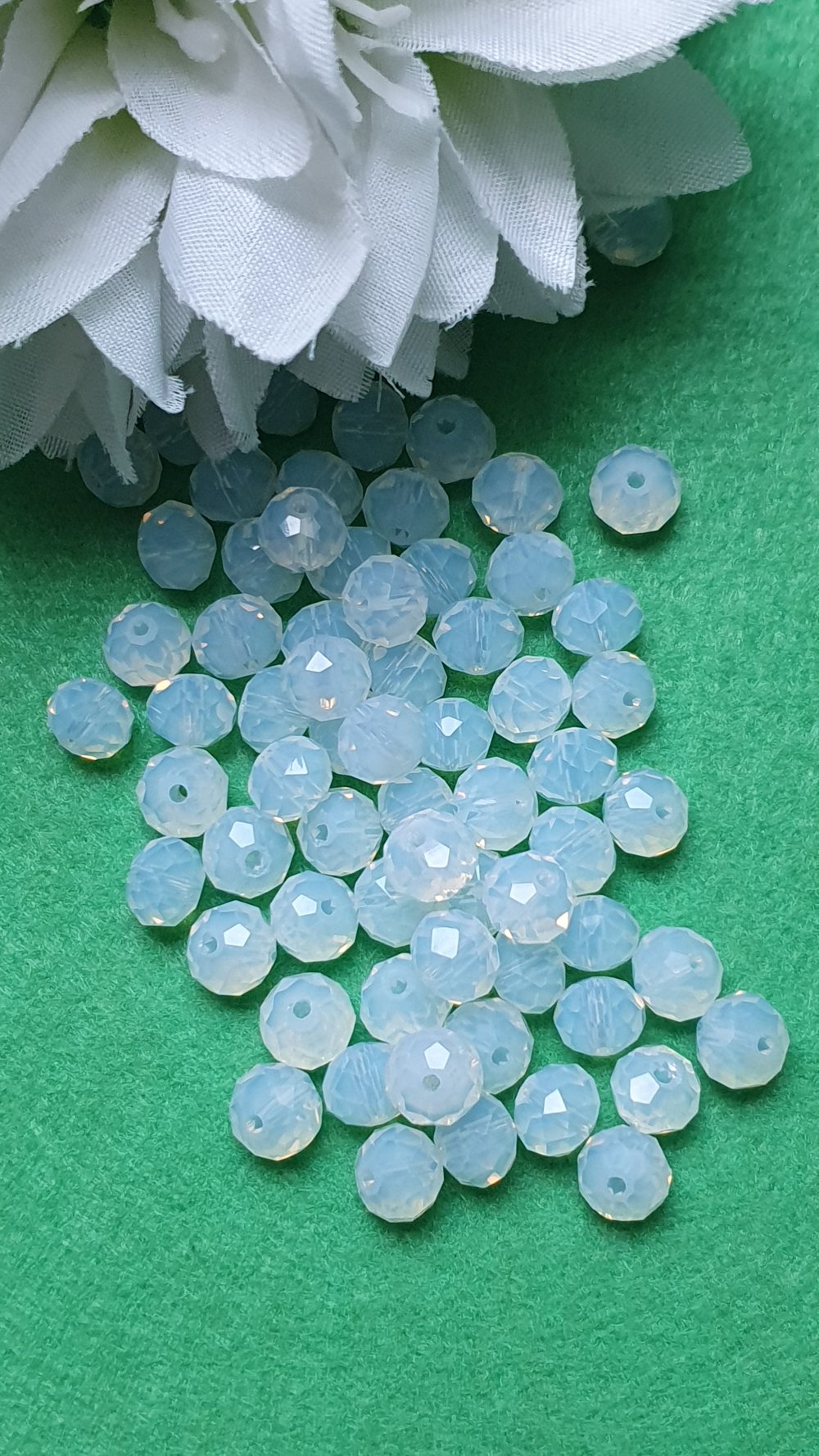 35 perles cristal blanc 7.5x6mm à facette ronde plate.Trou de 1mm