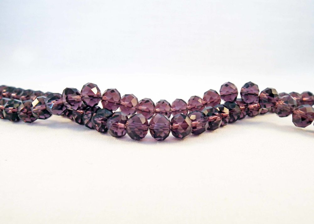 Une Enfilade de 70 Perles Précieuses 8X6mm Violet Mauve Prune Pâle en Verre Cristal à Facettes.