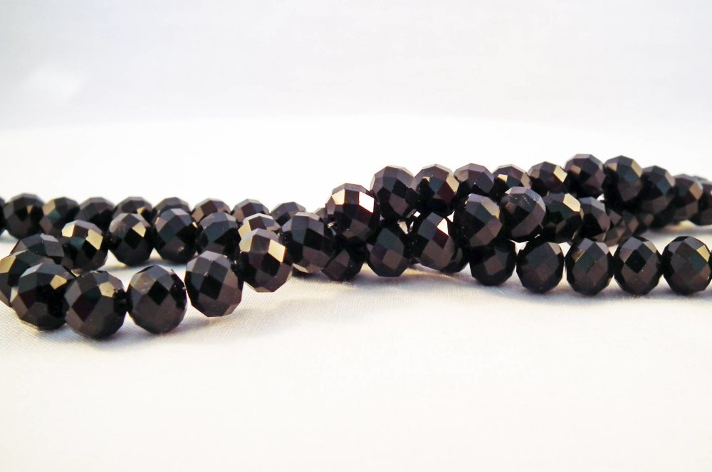 Une Enfilade de 70 Perles Précieuses 8X6mm Noir à reflets en Verre Cristal à Facettes.