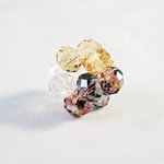 Fleur de Perles composée de 12 perles précieuses en Verre Cristal de couleur Prune, Jaune et Blanches de 6mm X 4mm, montées en forme de fleur, avec Anneau de jonction argenté inclut.