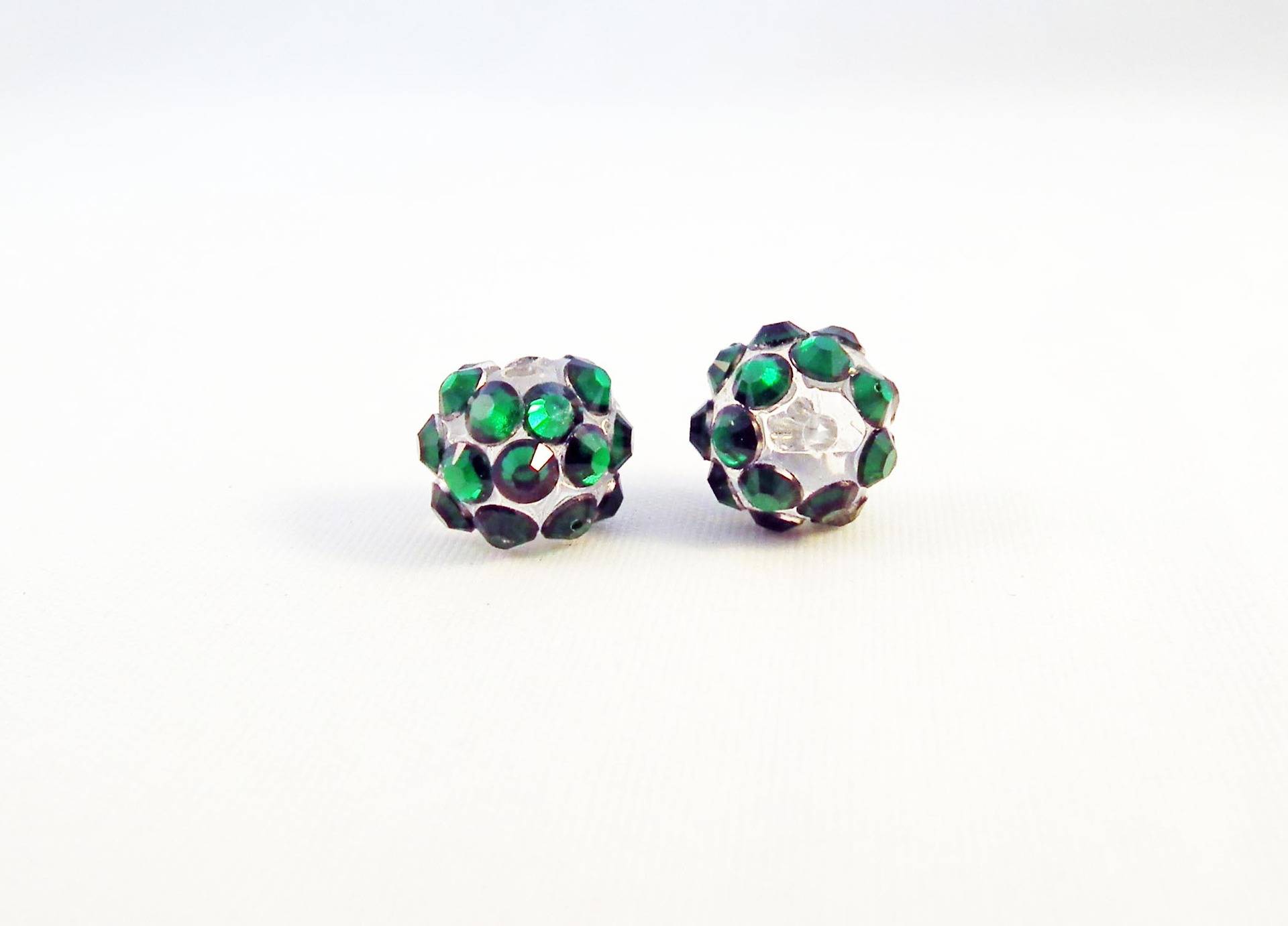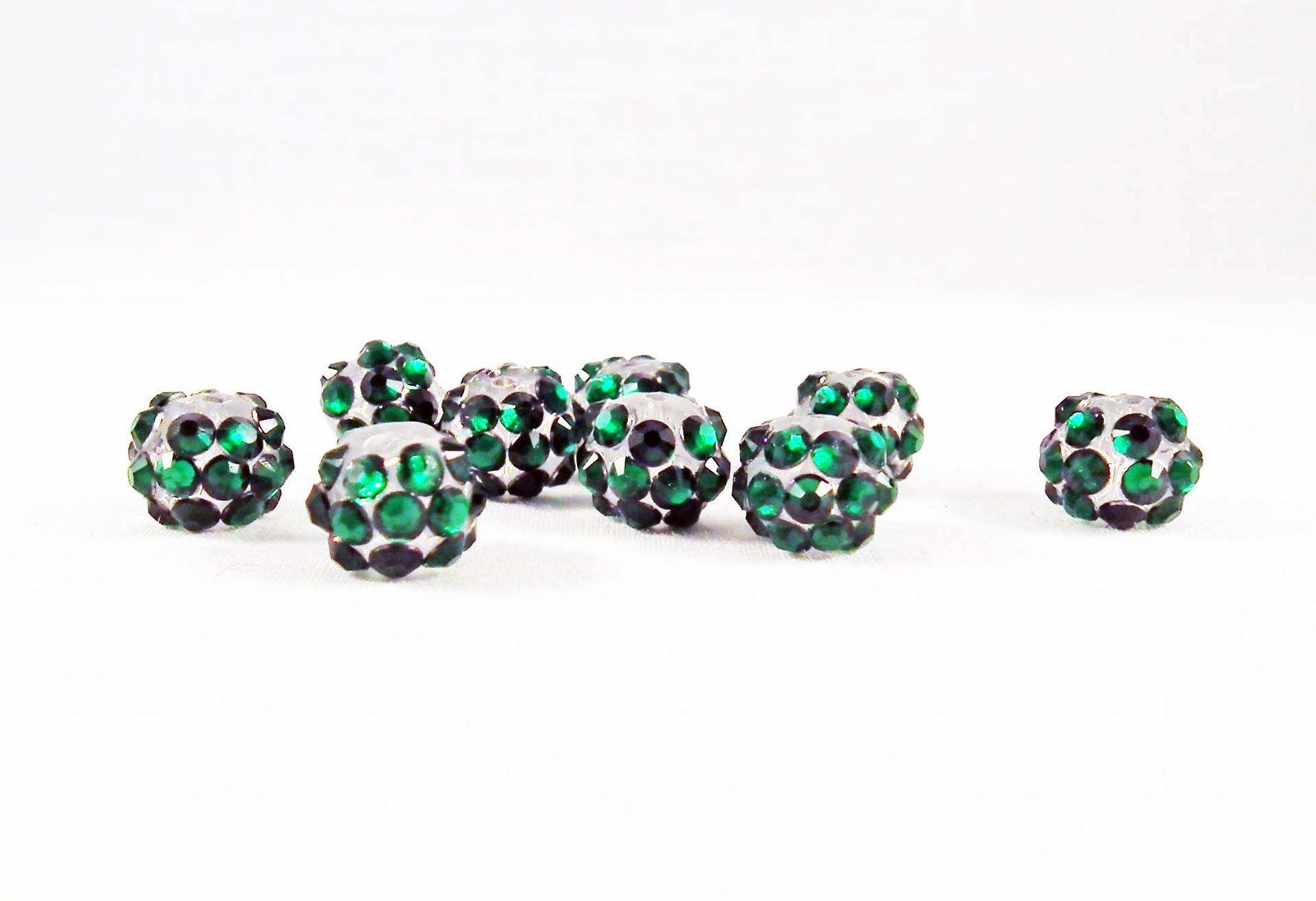 Lot de 2 Perles Rondes 10mm en Cristal de qualité Disco Shamballa Strass Bicolore Vert et Centre Blanc.