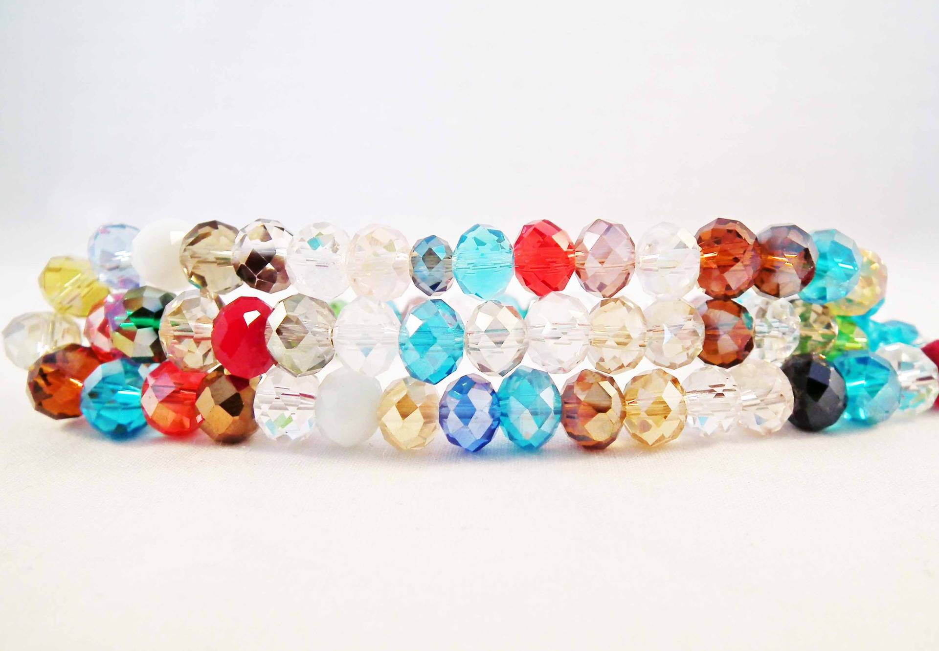 Lot de 20 Perles Précieuses 8X6mm de couleurs mixtes Aléatoires en Verre Cristal à Facettes.