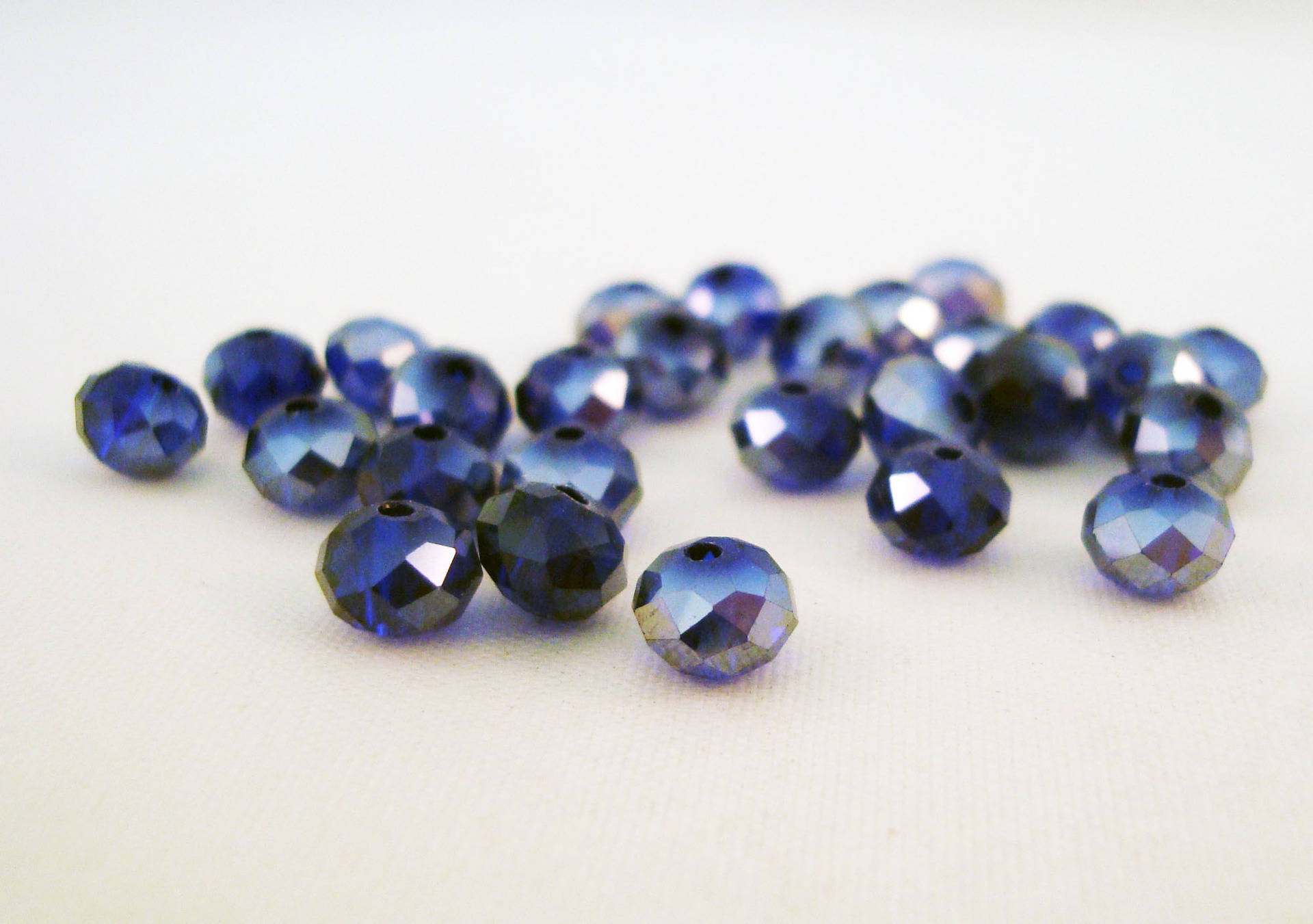 10 Perles Précieuses Bleu Foncé 6mm X 4mm en Verre Cristal à Facettes.