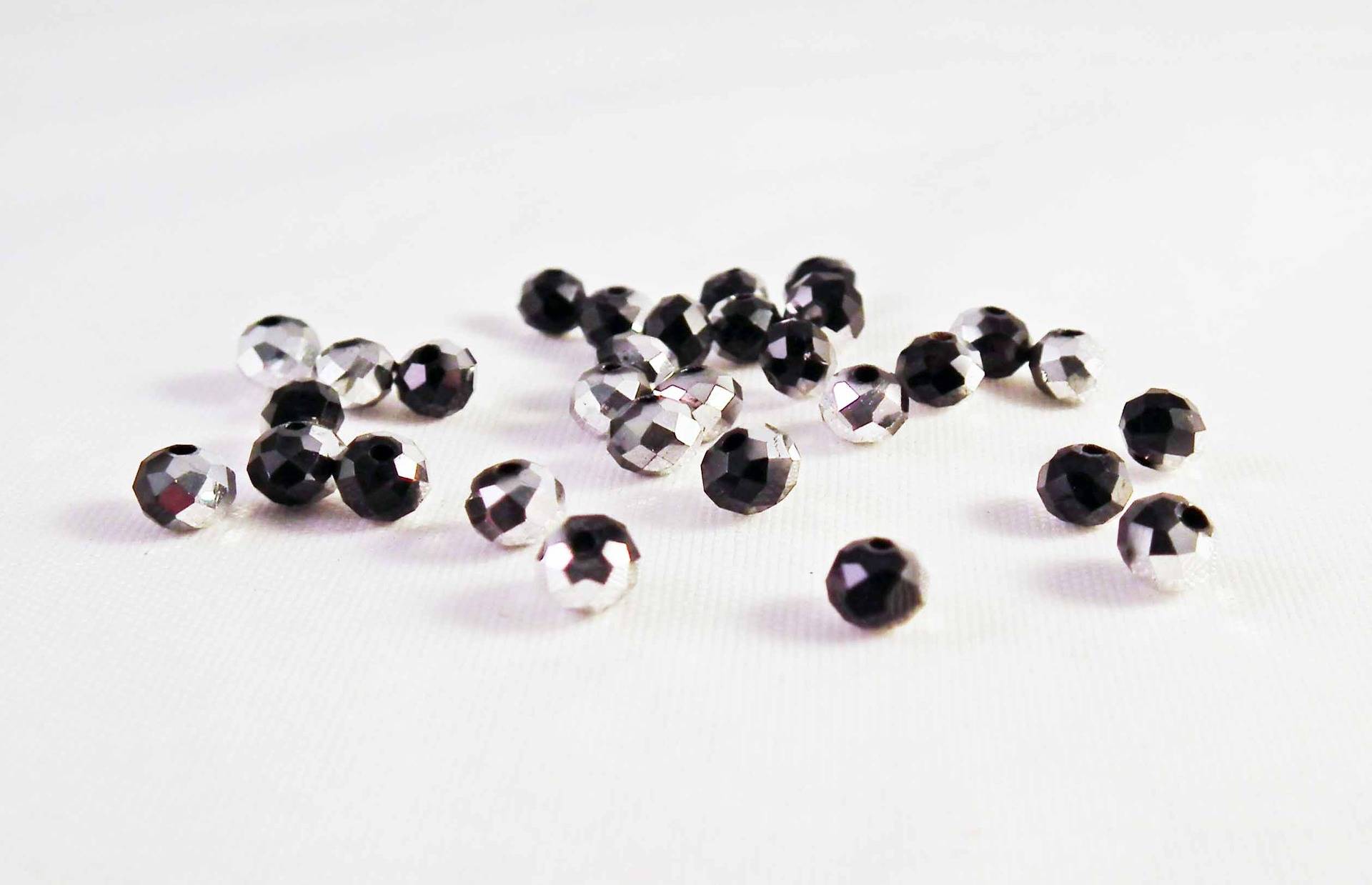 10 Perles Précieuses 4X3mm en Verre Cristal deux Couleurs Argenté et Noir bicolore, Rondelles à Facettes, 4mm X 3mm.