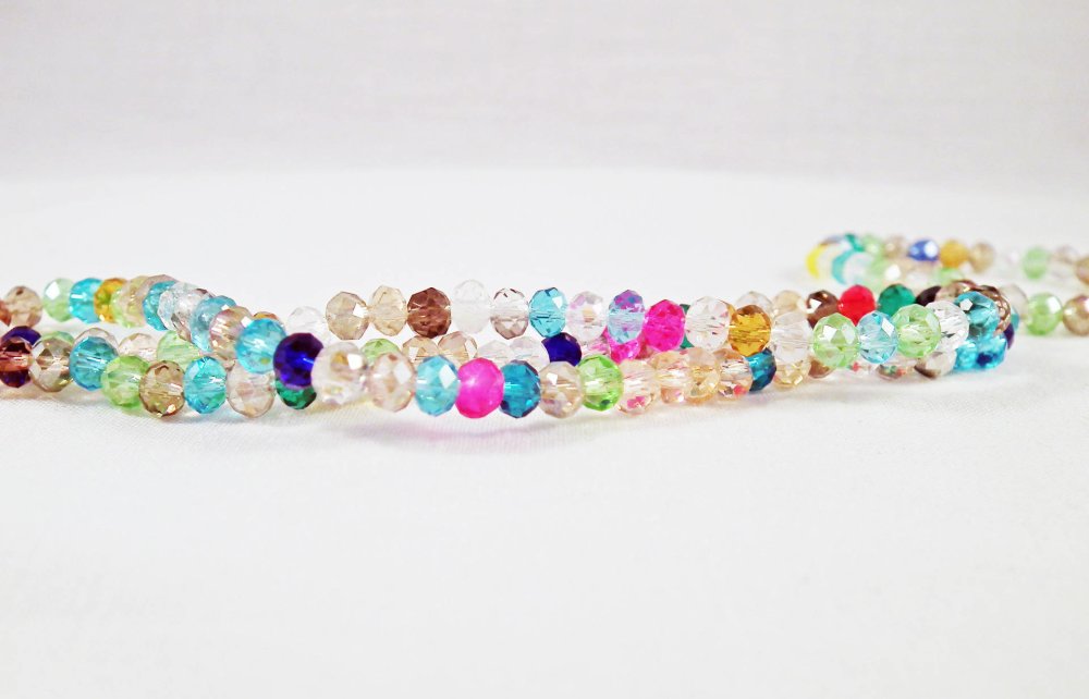 Une Enfilade d'environ 140 Perles Précieuses 4X3mm de couleurs mixtes Aléatoires en Verre Cristal à Facettes.