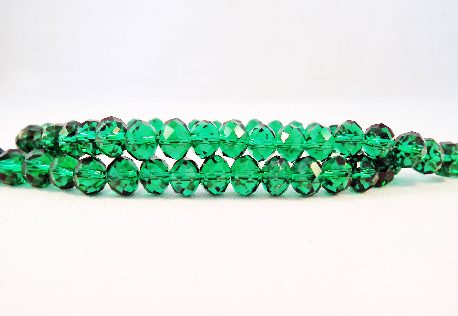 Une Enfilade de 70 Perles Précieuses 8X6mm Vert en Verre Cristal à Facettes.