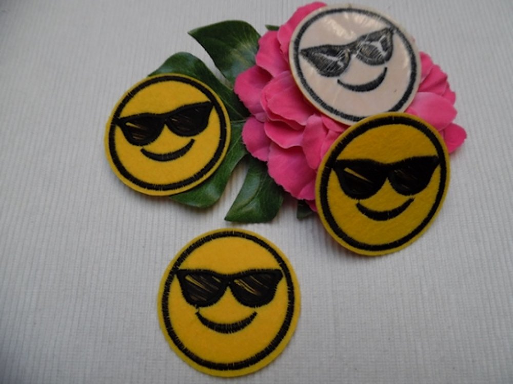 1 Applique écusson smiley émoticône 4.5cm fuchsia noir velours brodé à coller ou coudre