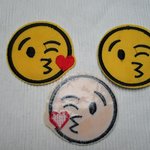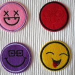 1 Applique écusson smiley émoticône 4.5cm jaune noir velours brodé à coller ou coudre