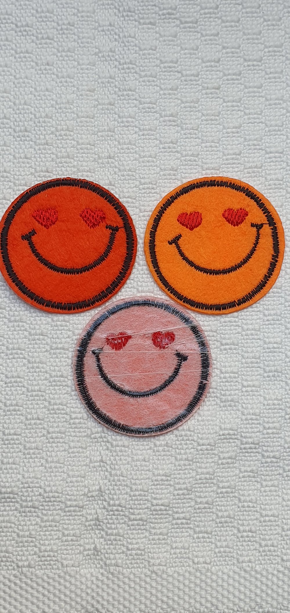 1 Applique écusson smiley émoticône 4.5cm orange clair noir velours brodé à coller ou coudre