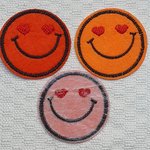 1 Applique écusson smiley émoticône 4.5cm orange clair noir velours brodé