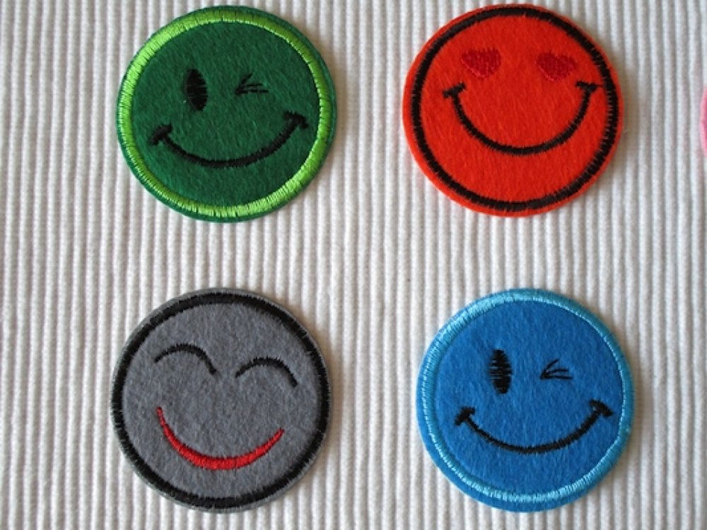 1 applique écusson smiley émoticône 4.5cm vert noir velours brodé