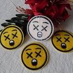 1 Applique écusson smiley émoticône 4.5cm vert noir velours brodé