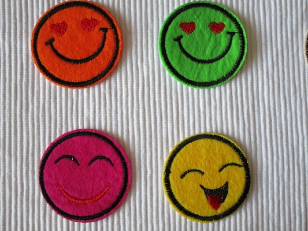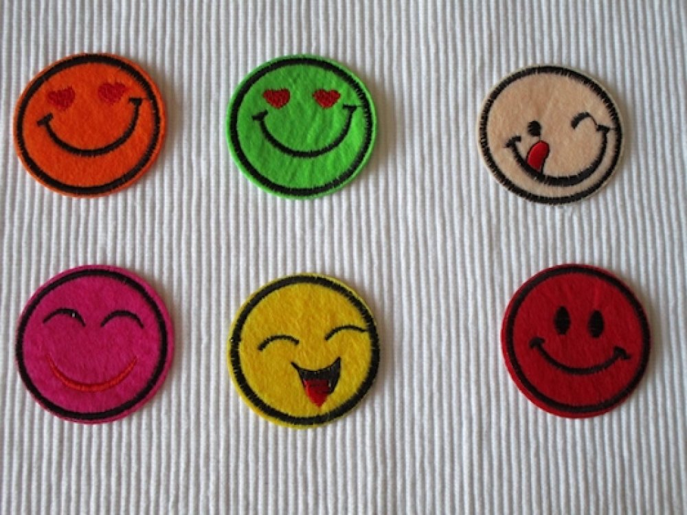 1 Applique écusson smiley émoticône 4.5cm vert noir velours brodé