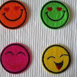 1 Applique écusson smiley émoticône 4.5cm vert noir velours brodé à coller ou coudre