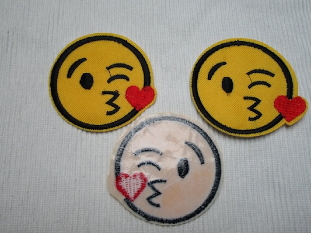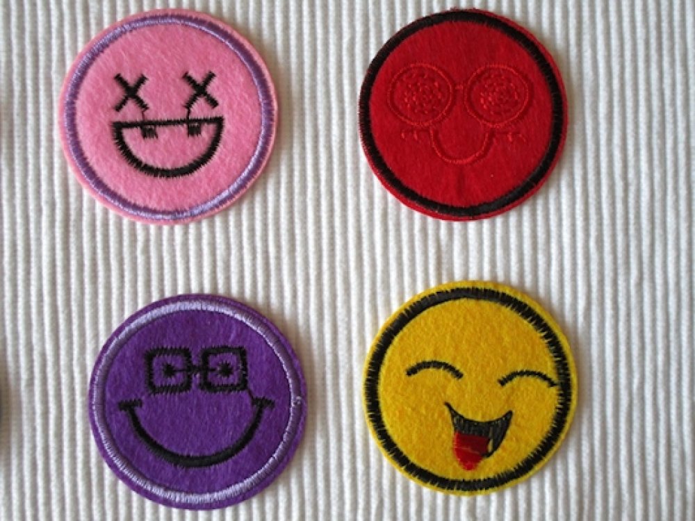1 Applique écusson smiley émoticône 4.5cm violet noir velours brodé à coller ou coudre