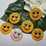 1 Applique écusson smiley émoticône 6cm jaune noir velours brodé à coller ou coudre