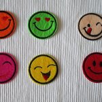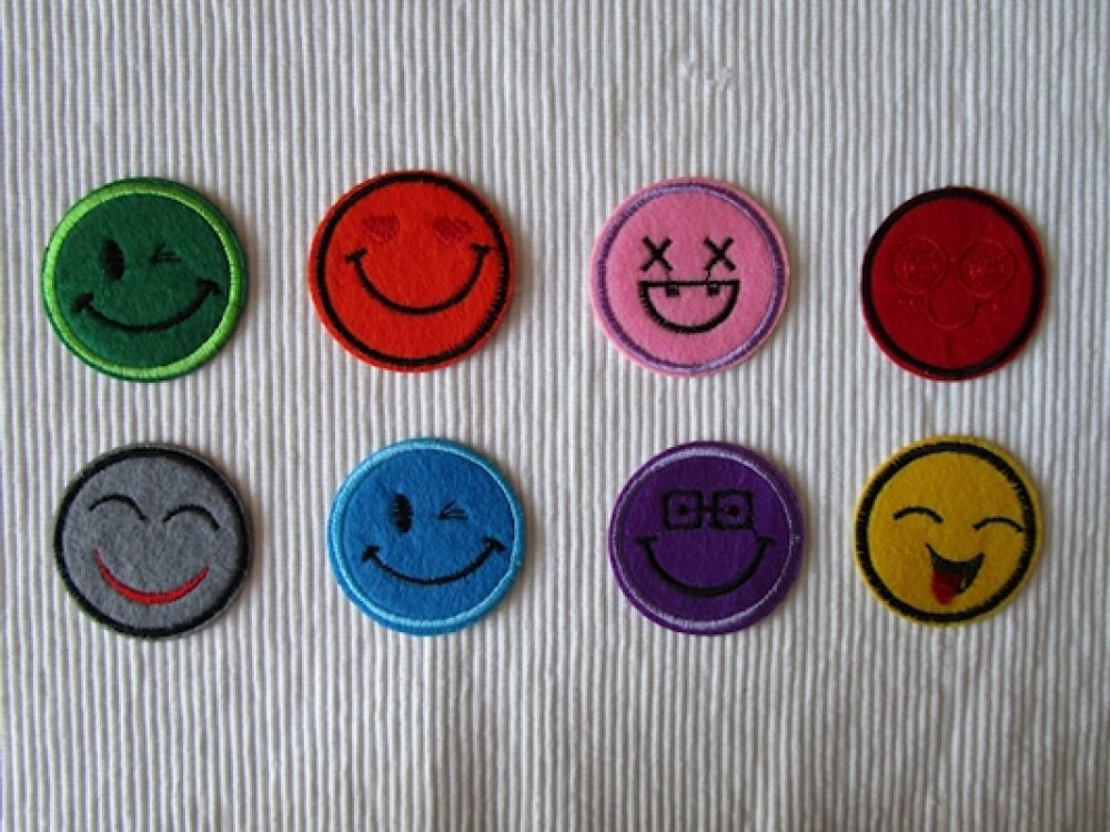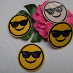 1 Applique écusson smiley émoticône 6cm jaune noir velours brodé à coller ou coudre